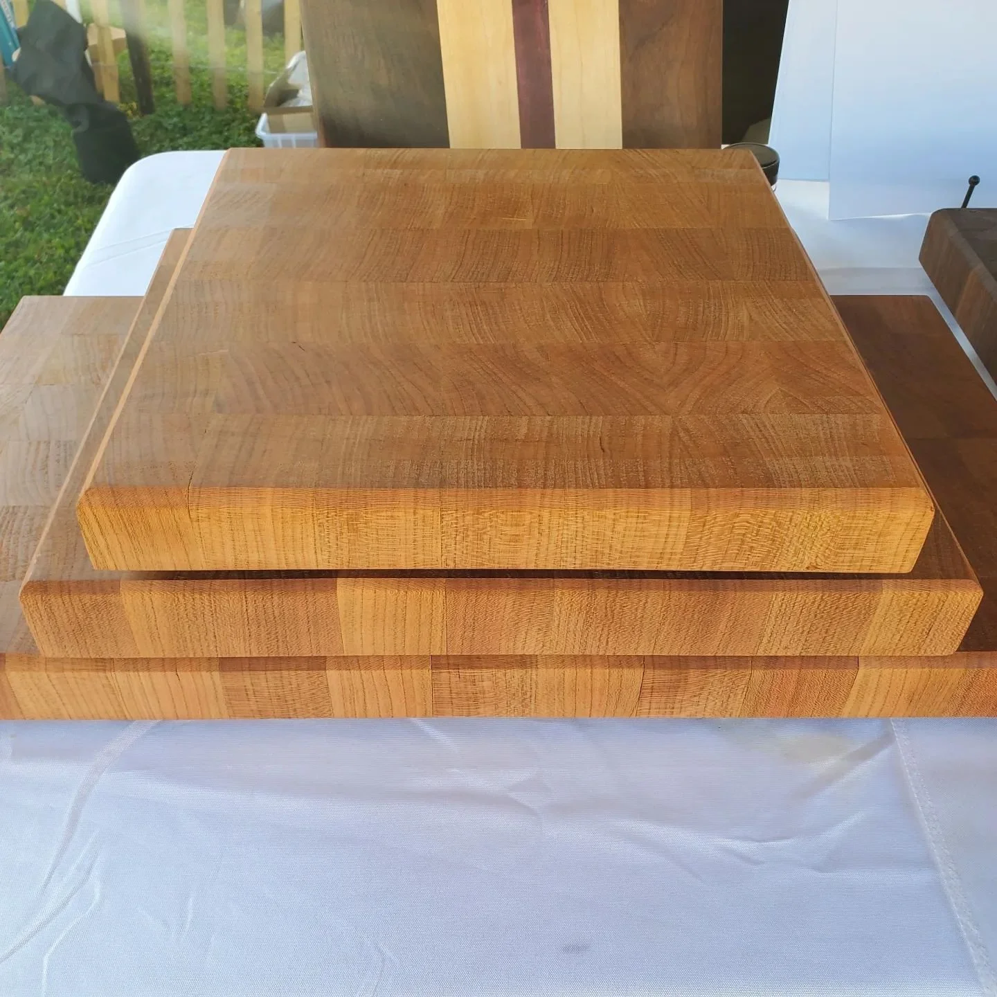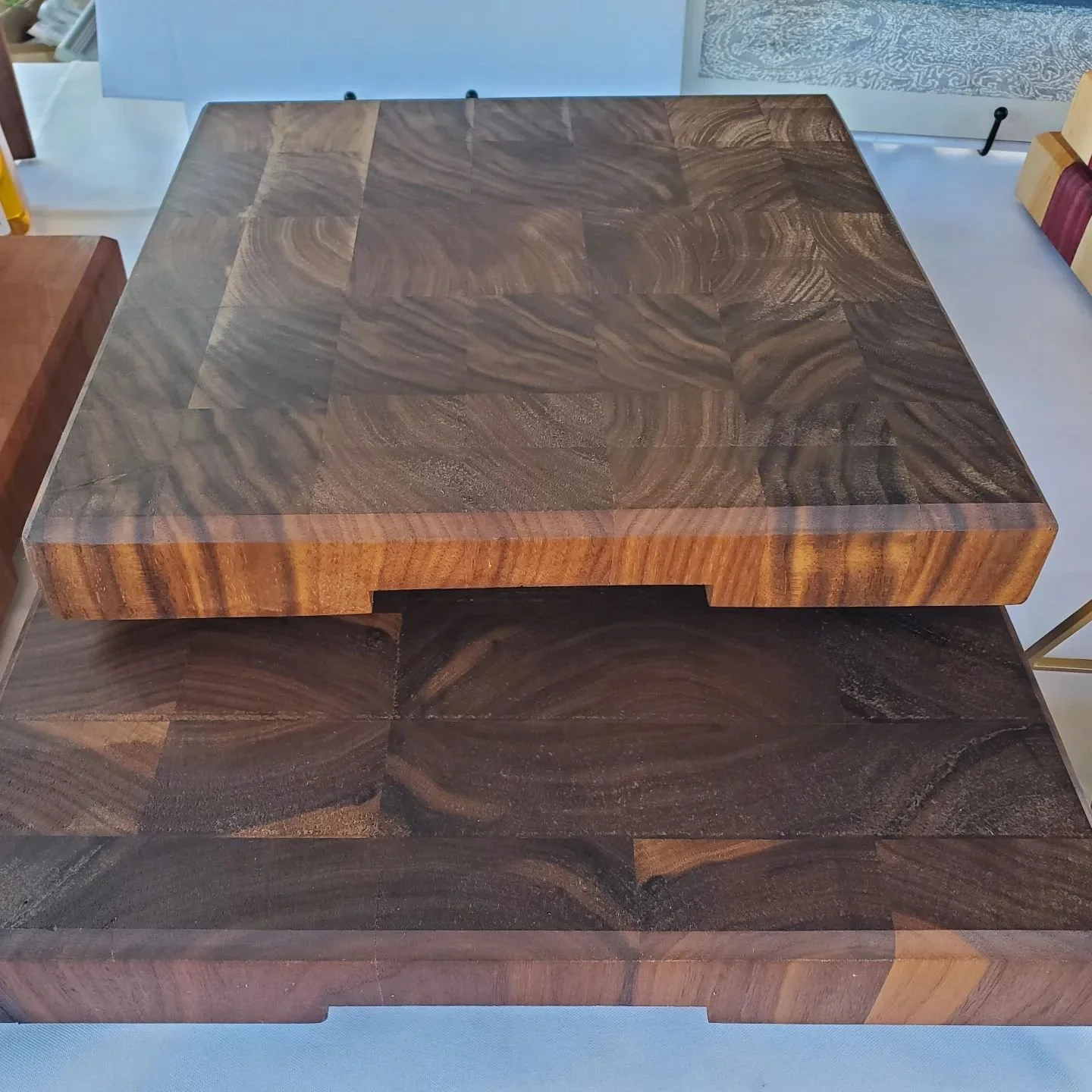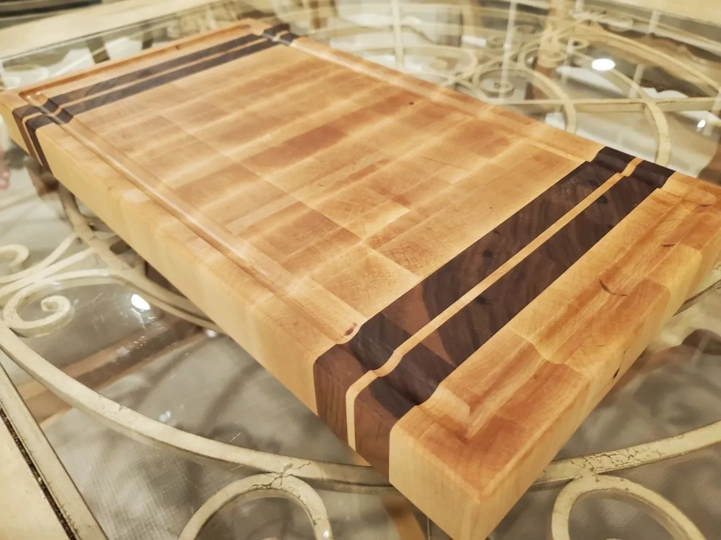 These handmade boards are perfect for using as either a cutting board or a charcuterie board. Made from White Oak and Purple Heart woods, these boards can be purchased in two sizes - 24” long x 12” wide x 1.5” thick or 18” long x 12” wide x 1.5” thick - and additional customizations are possible if you would like to add an optional feature like a juice groove.